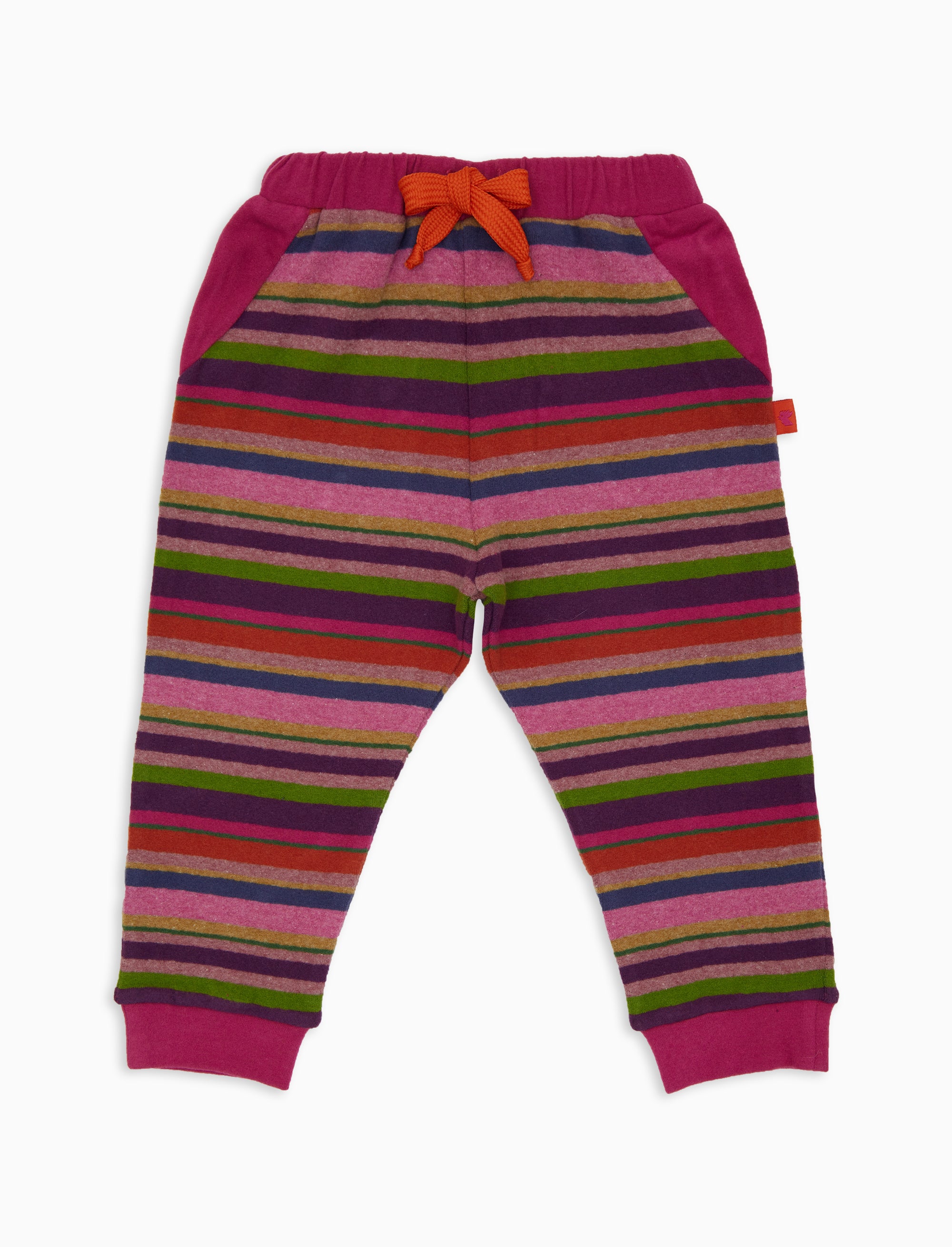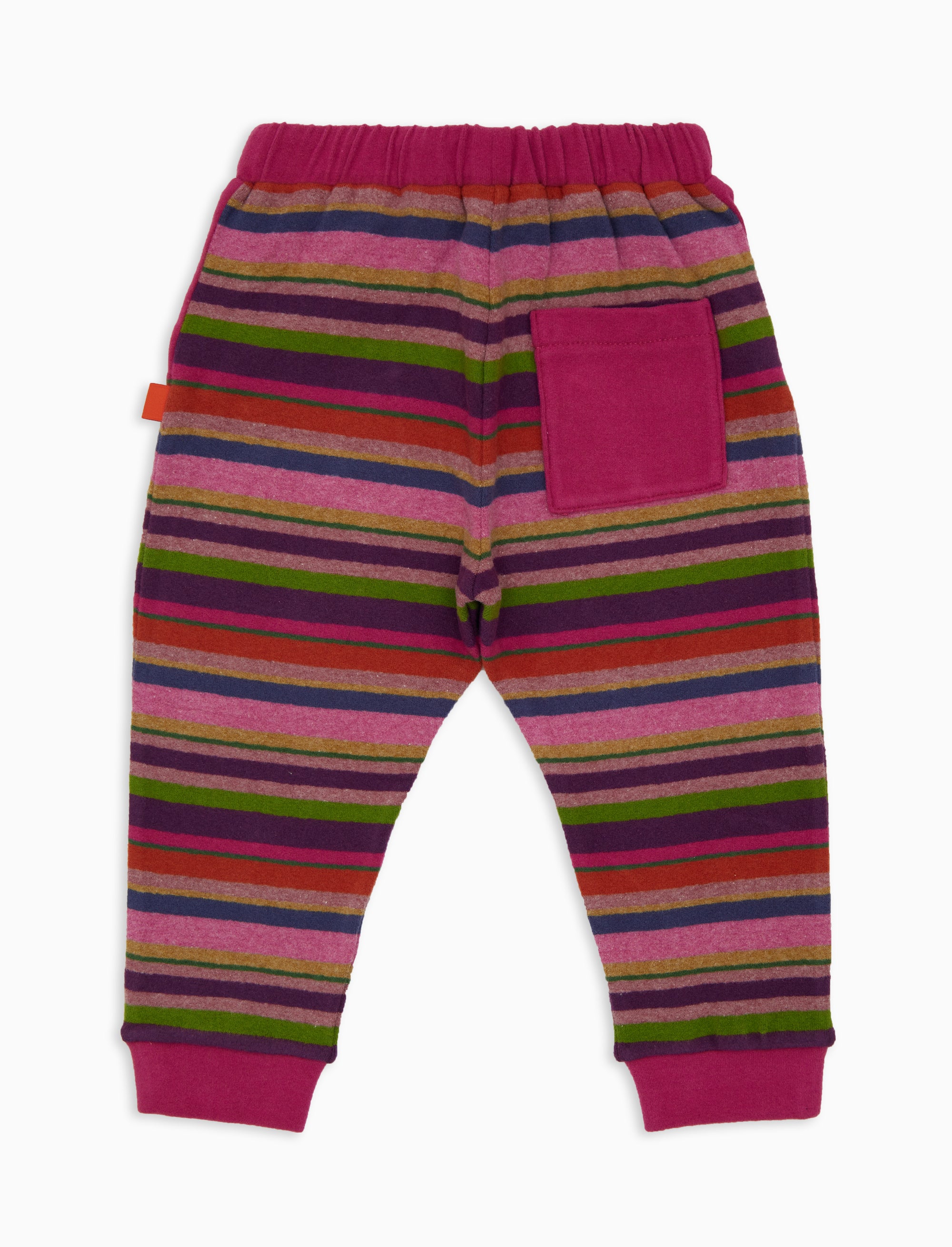 Pantaloncino in pile a righe multicolor sui toni del viola e fiocco in contrasto colore. Le taschine laterali e la tasca dietro in tinta unita completano il design di questo capo.Caldo e confortevole, con l'iconica stampa multicolor, una perfetta idea regalo!