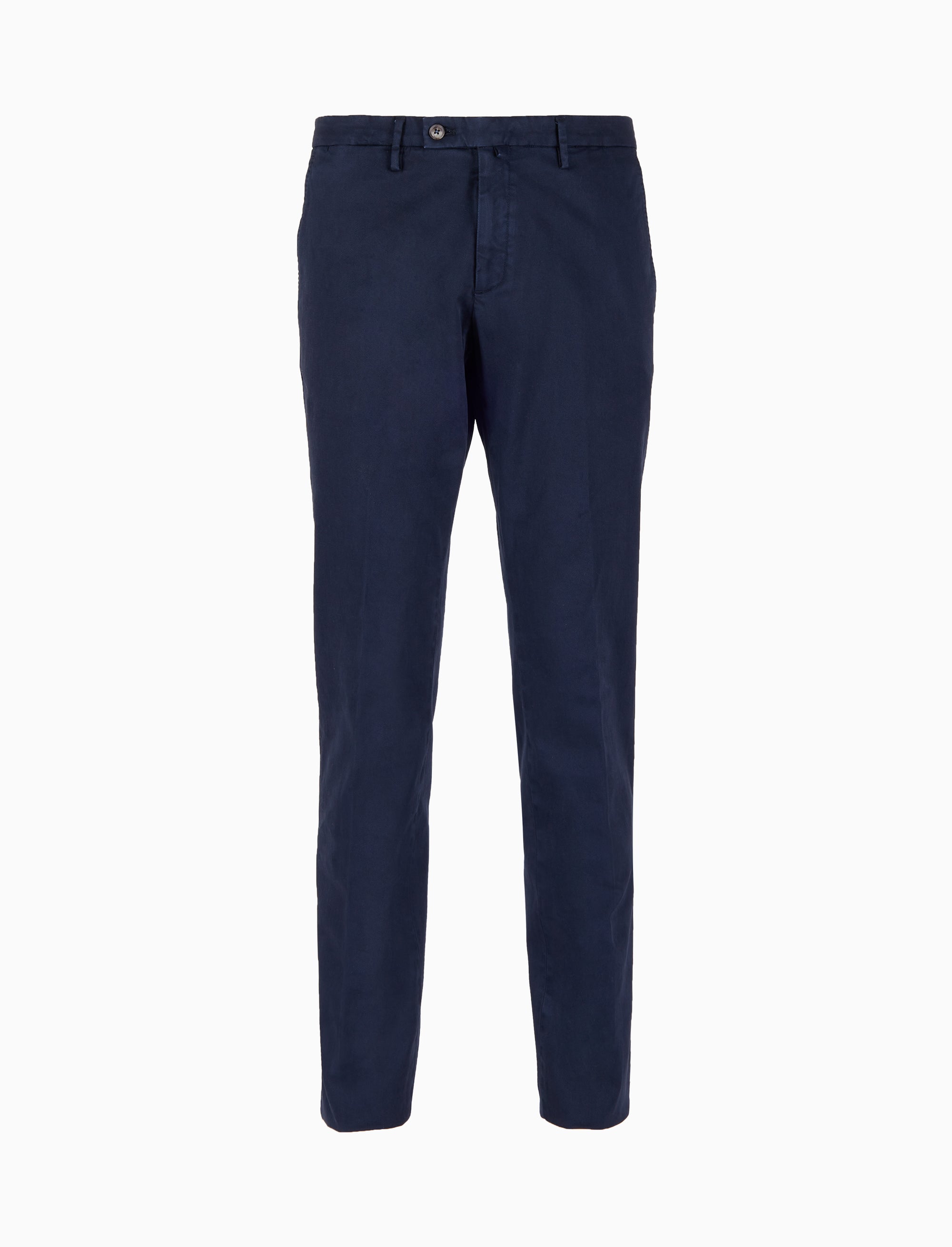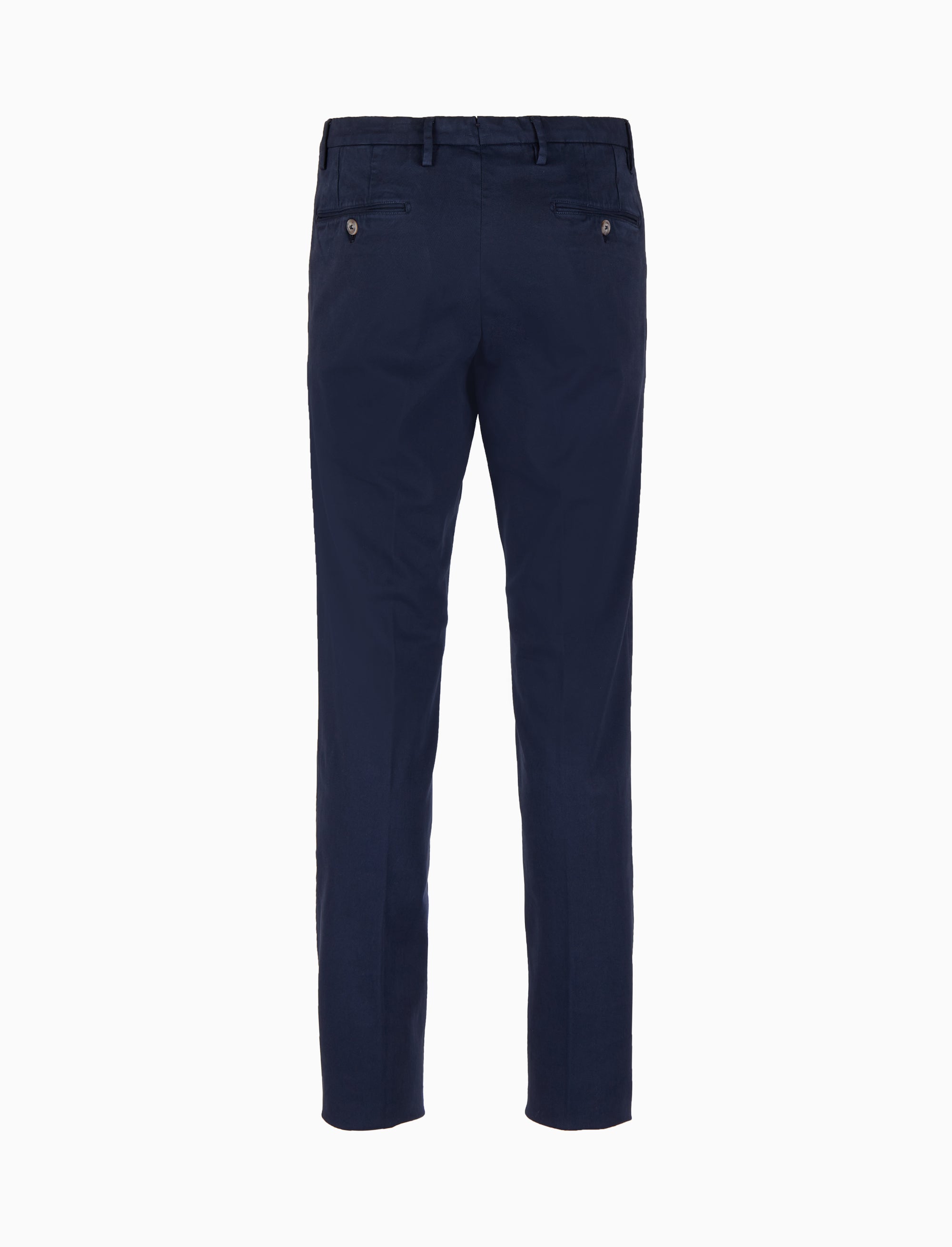 Pantalone lungo da uomo tinta unita blu modello chino in gabardina di cotone elasticizzato. Tasche davanti e taschini sul retro. Vita con passanti, apertura con zip e bottoni. Un capo versatile ideale per un look casual. Gallo: sinonimo di qualità italiana dal 1927