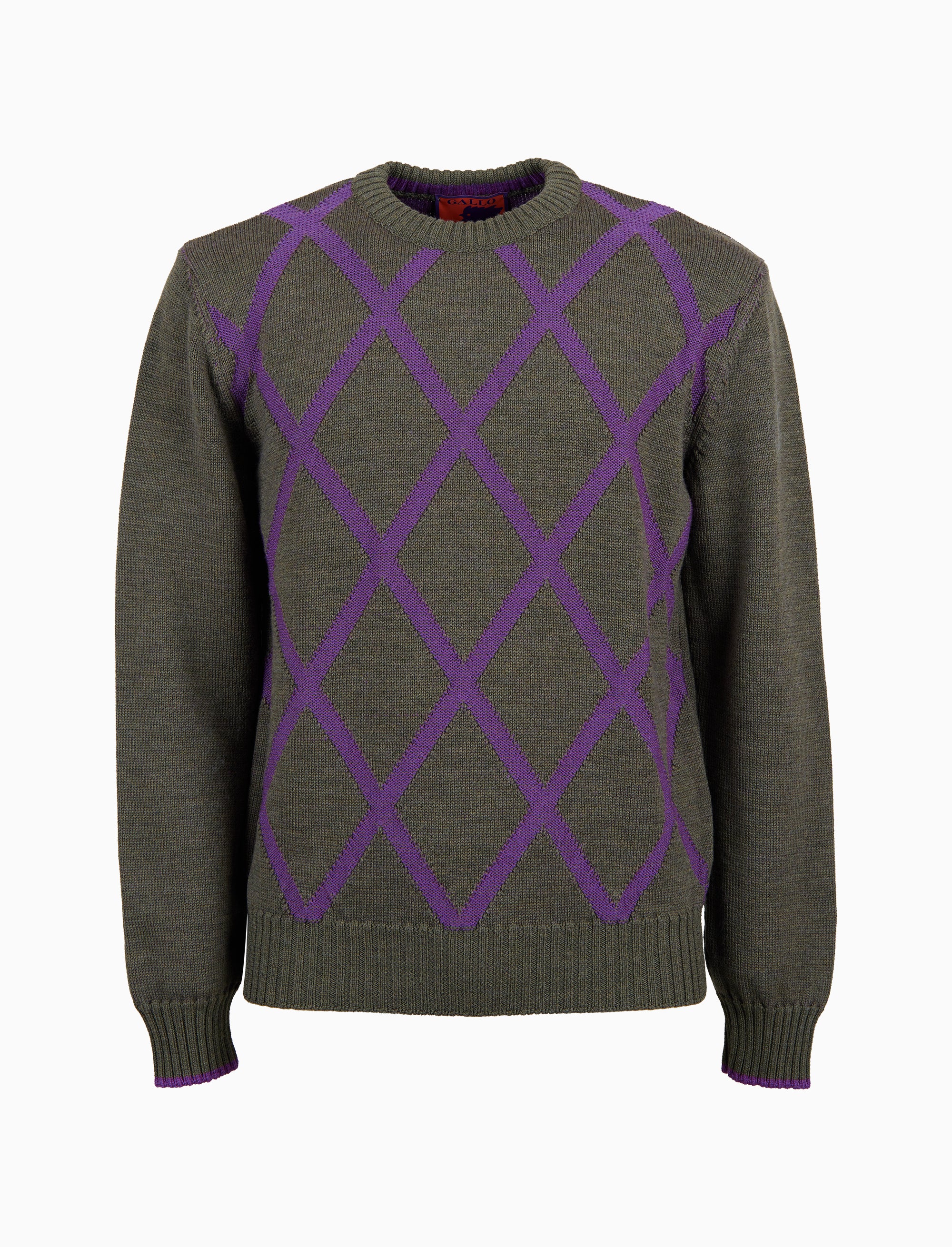 Pull girocollo da uomo in pura lana, impreziosito da un'elegante fantasia a rombi nelle tonalità del verde. Perfetto per un look raffinato e senza tempo. Un capo firmato Gallo, eccellenza italiana dal 1927.