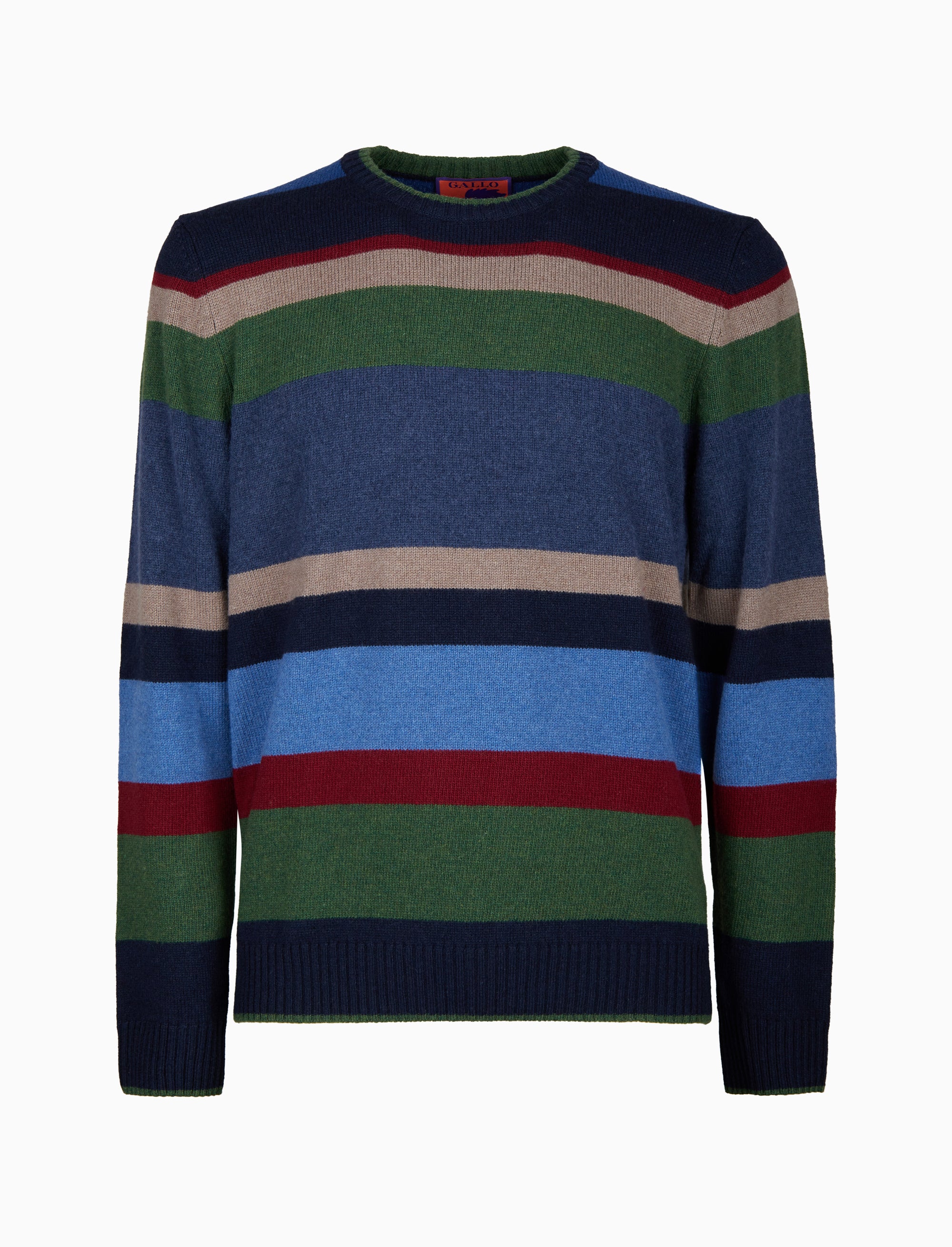 Pull girocollo uomo lana, viscosa e cashmere blu righe multicolor