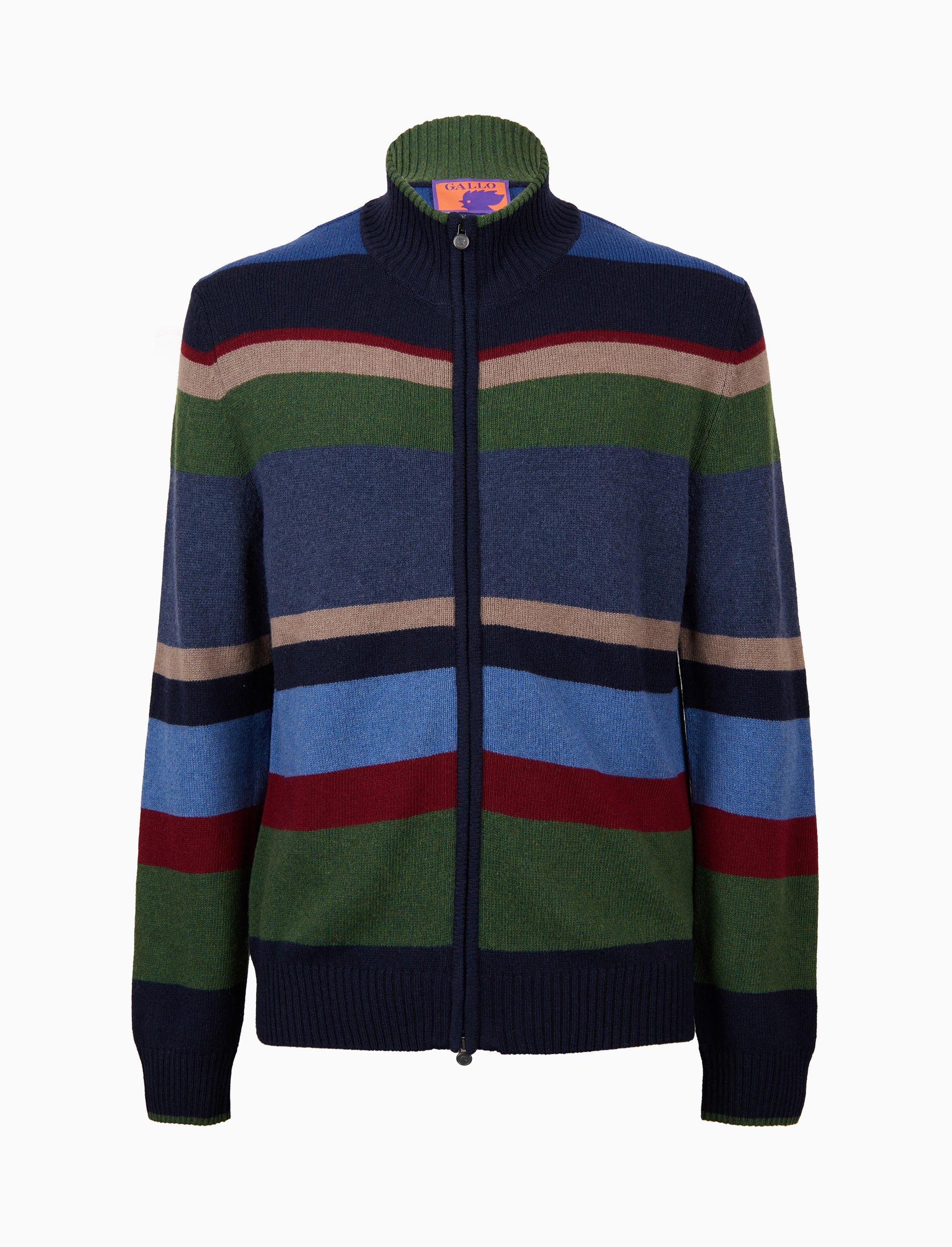 Pull a lupetto da uomo realizzato in Italia in maglia rasata. Mix di lana, cashmere e filati pregiati. L’iconica fantasia a righe multicolor nei toni del blu rende il capo adatto ad un stile casual. Gallo: sinonimo di qualità ed eccellenza dal 1927.