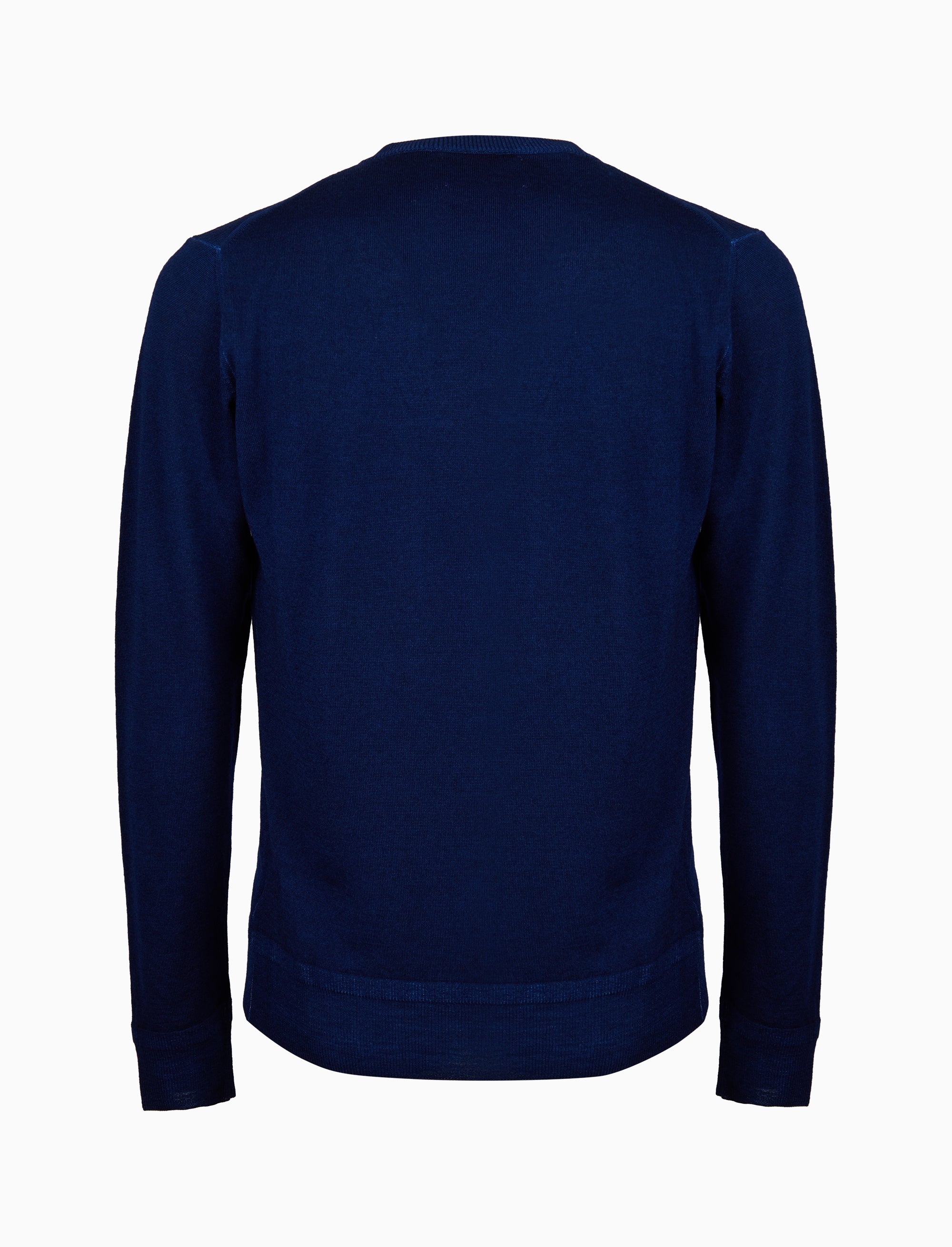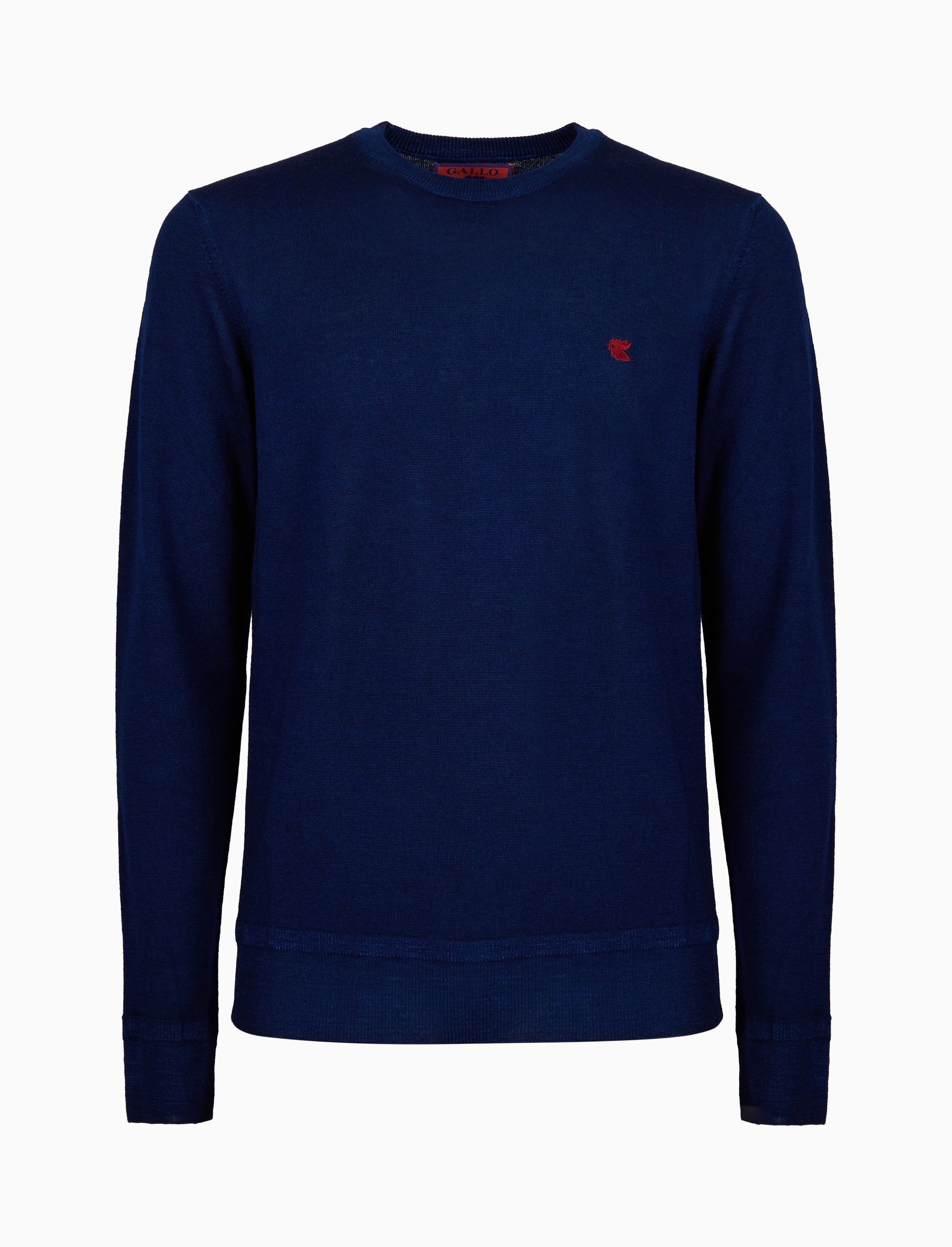 Pull girocollo da uomo realizzato in Italia. In lana, su fondo blu con un piccolo logo sul davanti ricamato a contrasto. Gallo: sinonimo di qualità ed eccellenza dal 1927.