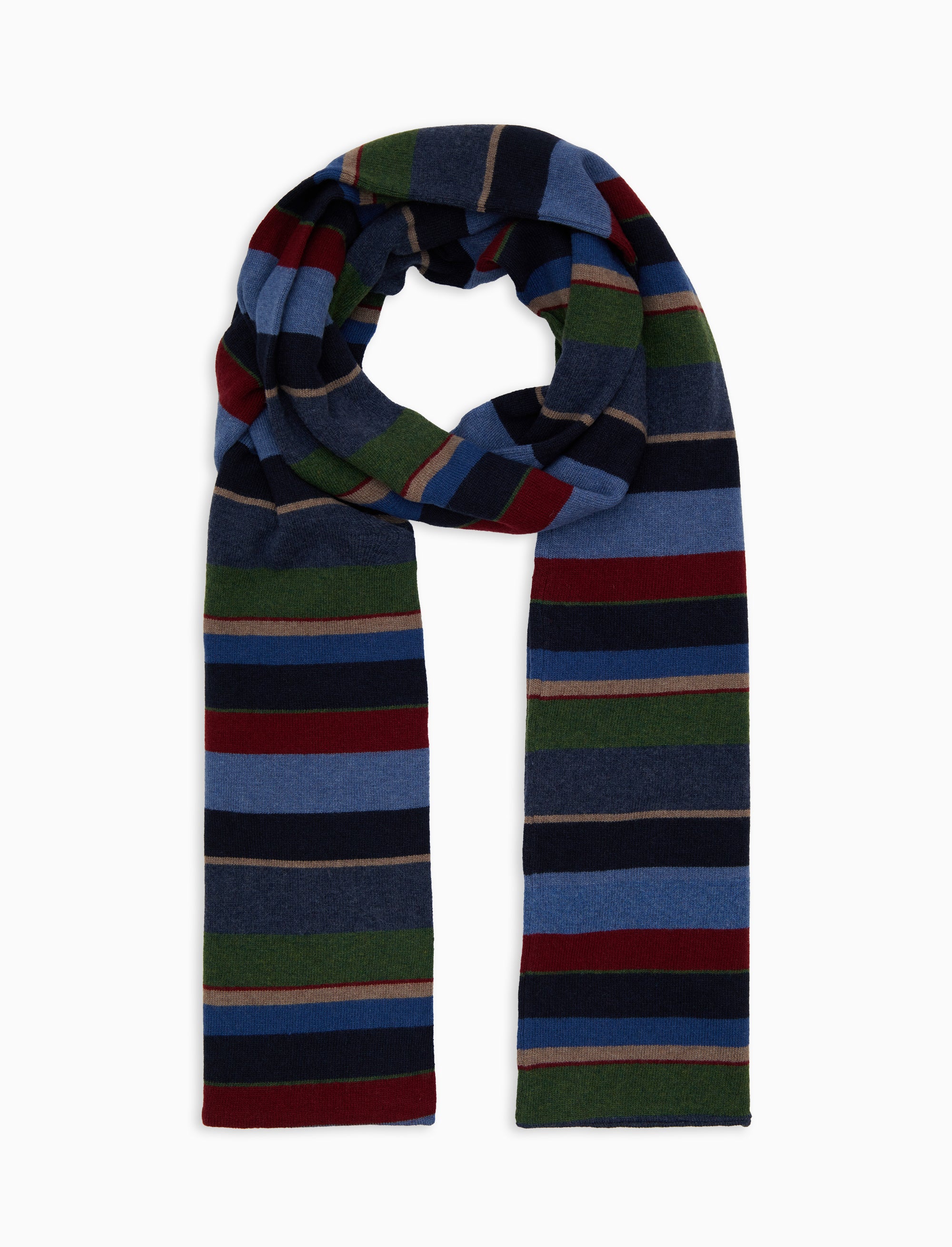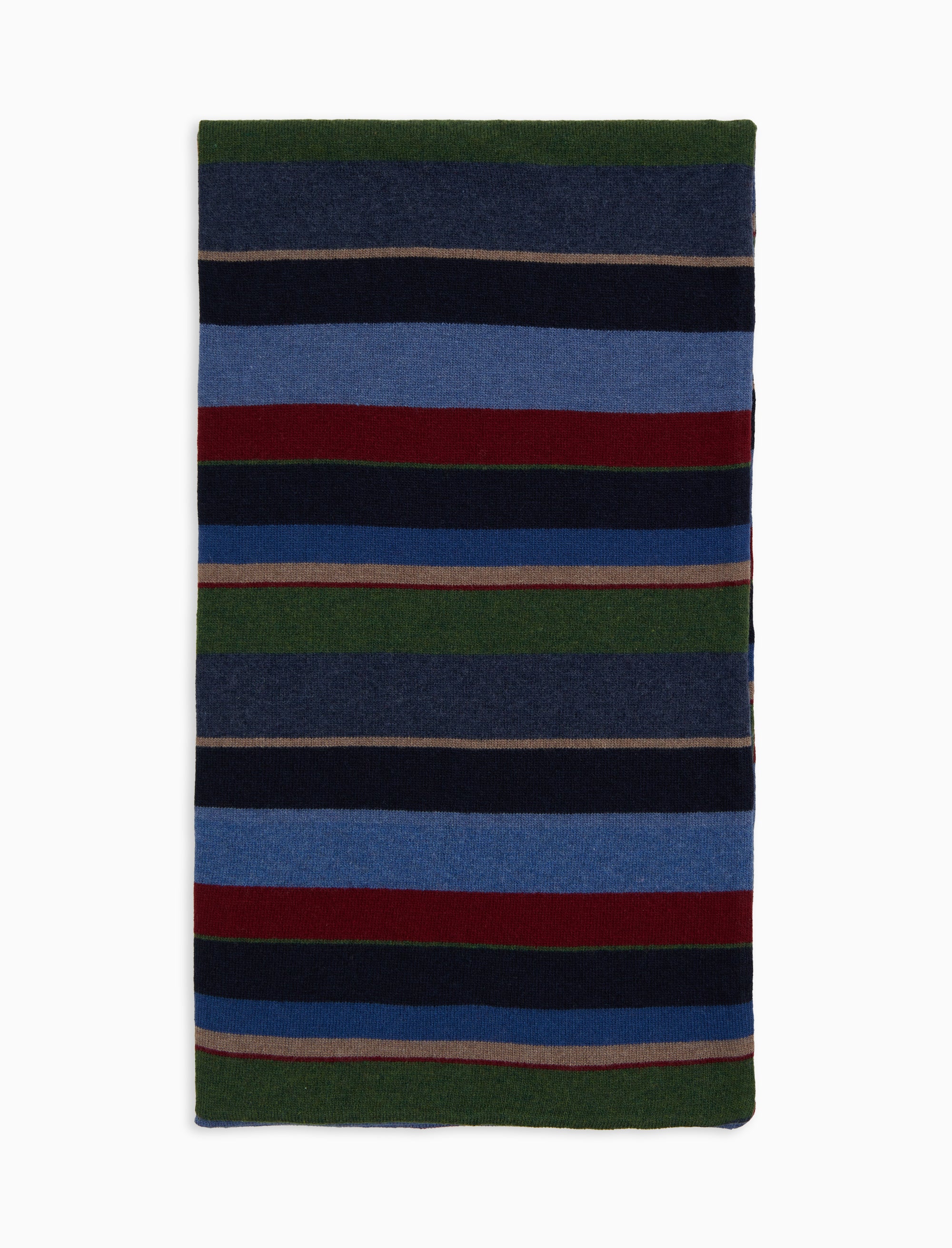 Sciarpa doppiata unisex lana e cashmere blu righe multicolor