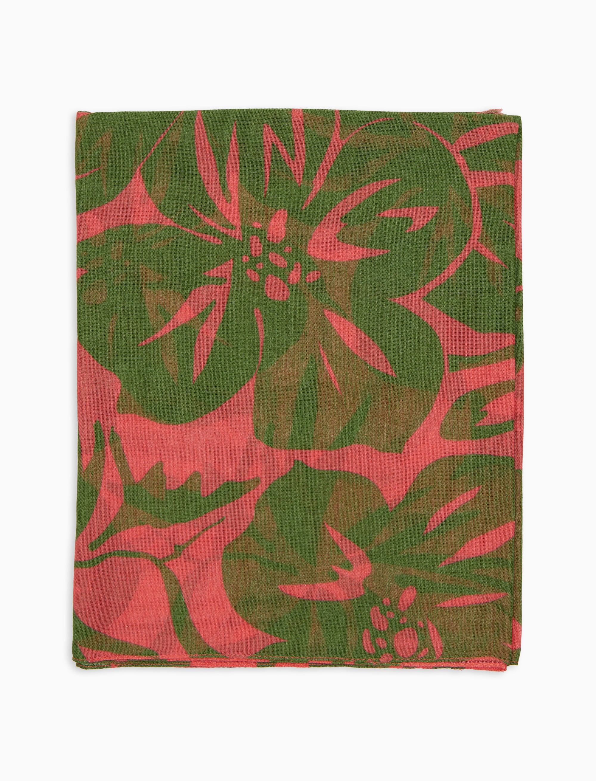 Sciarpa unisex cotone e lino fantasia fiori rosa