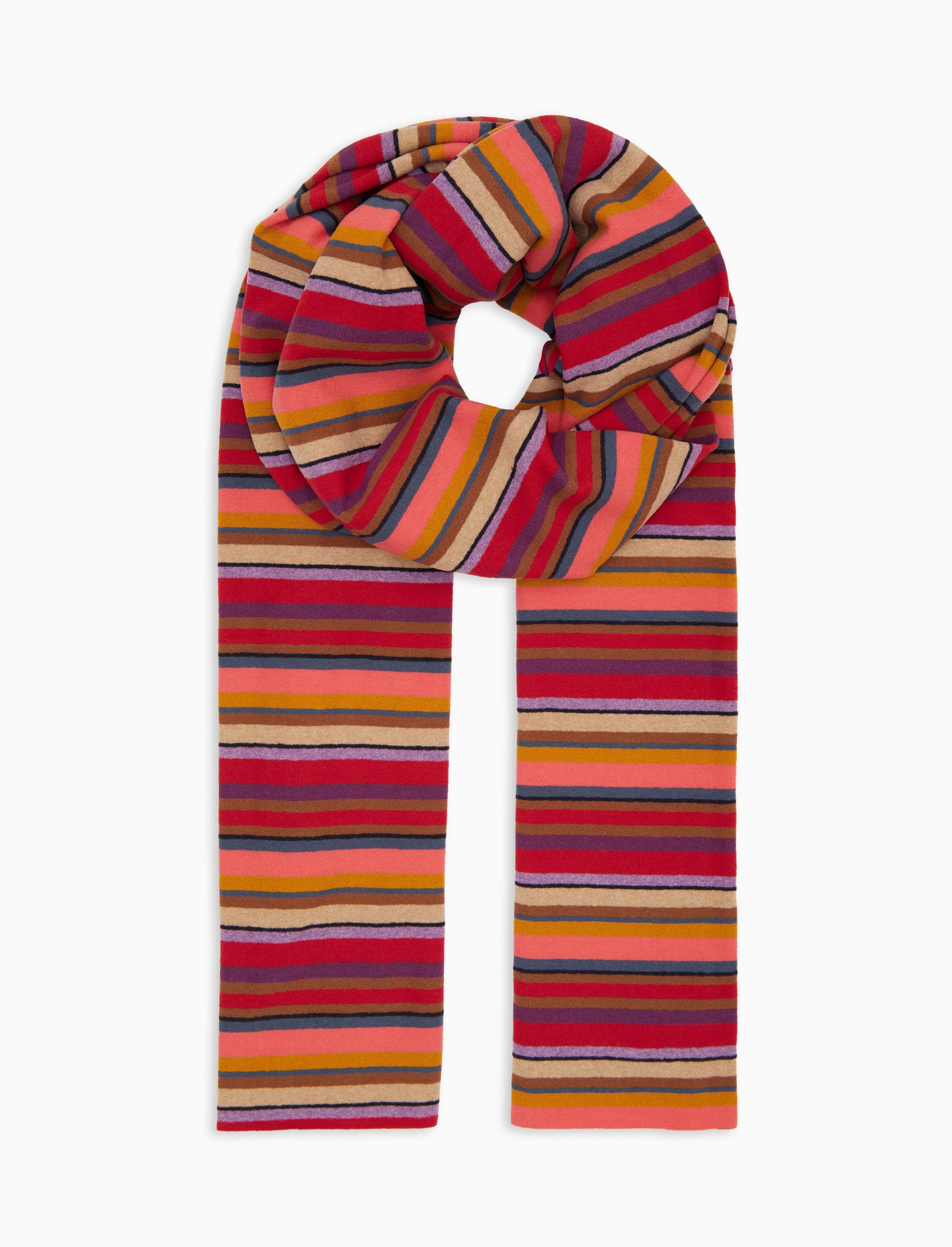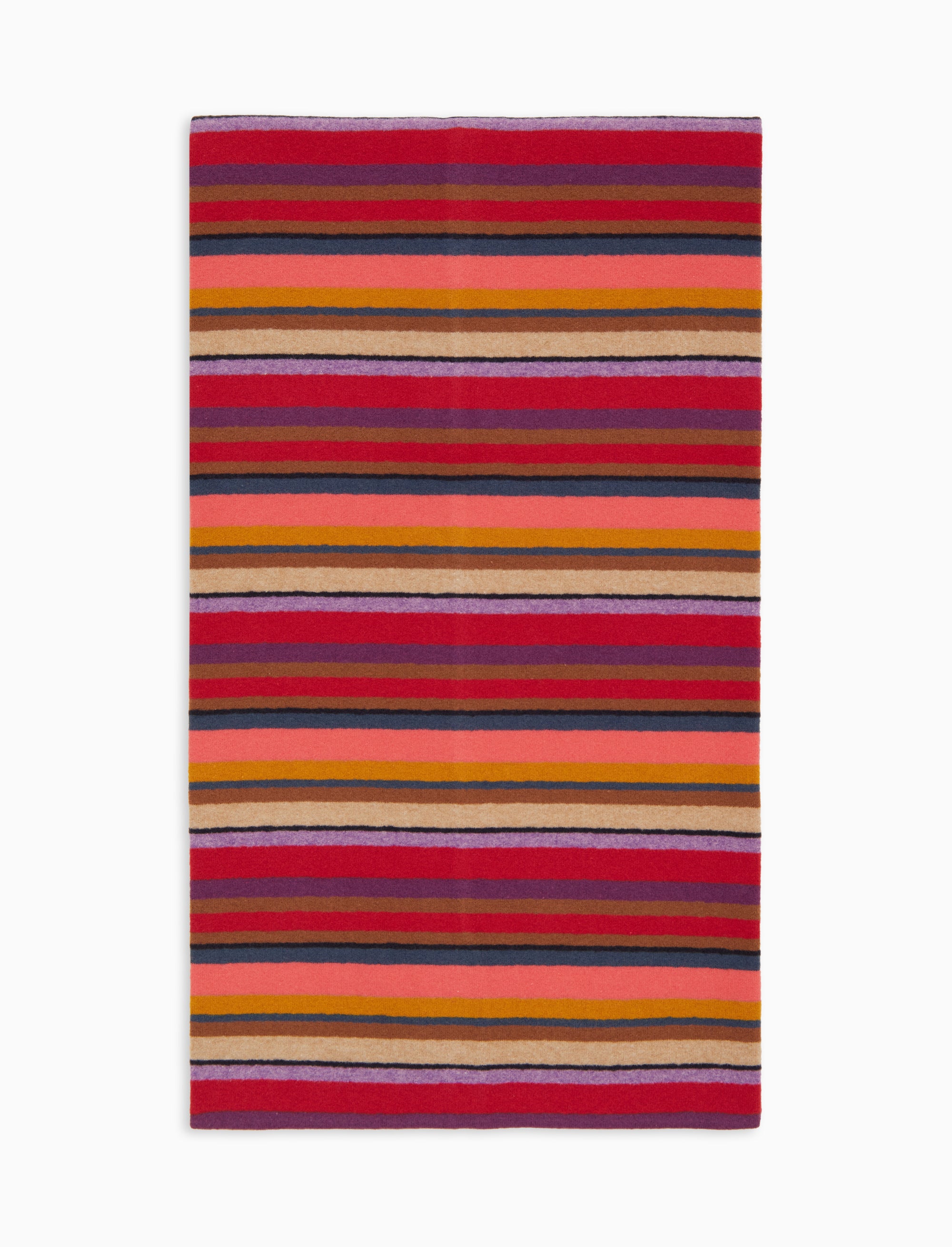 Sciarpa unisex realizzata in Italia in pile. Resa originale dall'iconica fantasia a righe multicolor su base bordò. Morbida e avvolgente, si abbina perfettamente ad ogni tipo di look.