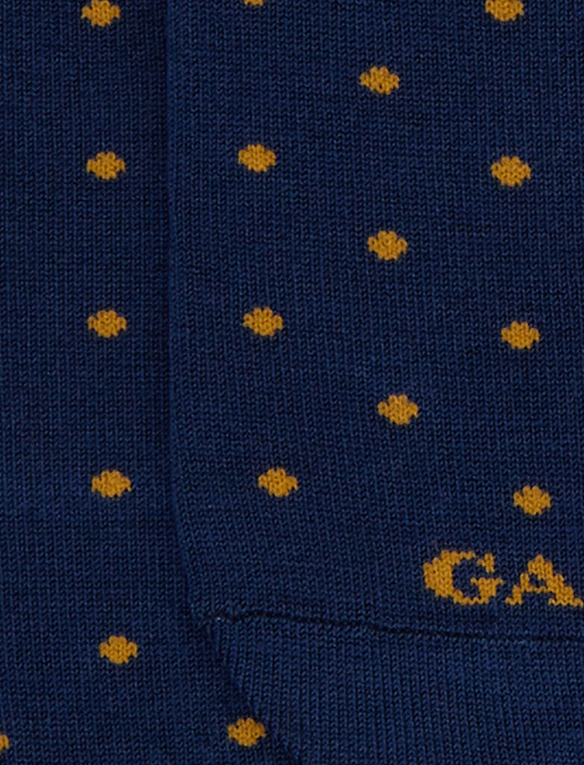 Soletta da donna fatta a mano in Italia in morbido cotone leggerissimo. L'iconica fantasia a pois, nei toni del blu, rende queste calze immediatamente riconoscibili e perfette da abbinare ad ogni tipo di look. Il brand Gallo è ricamato in punta a contrasto. Sinonimo di qualità ed eccellenza dal 1927.
