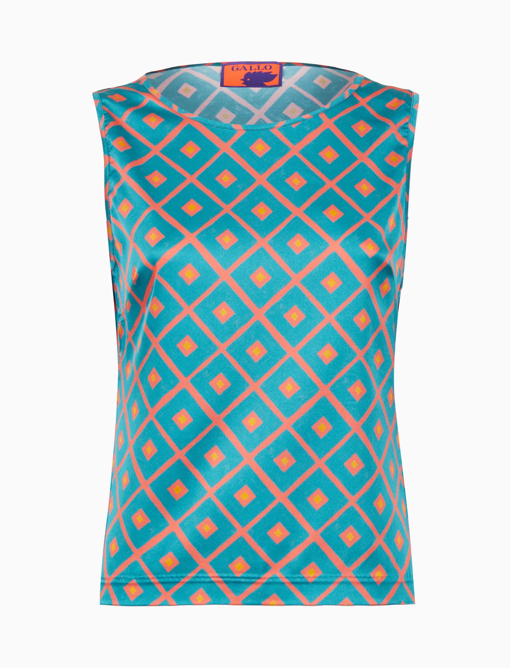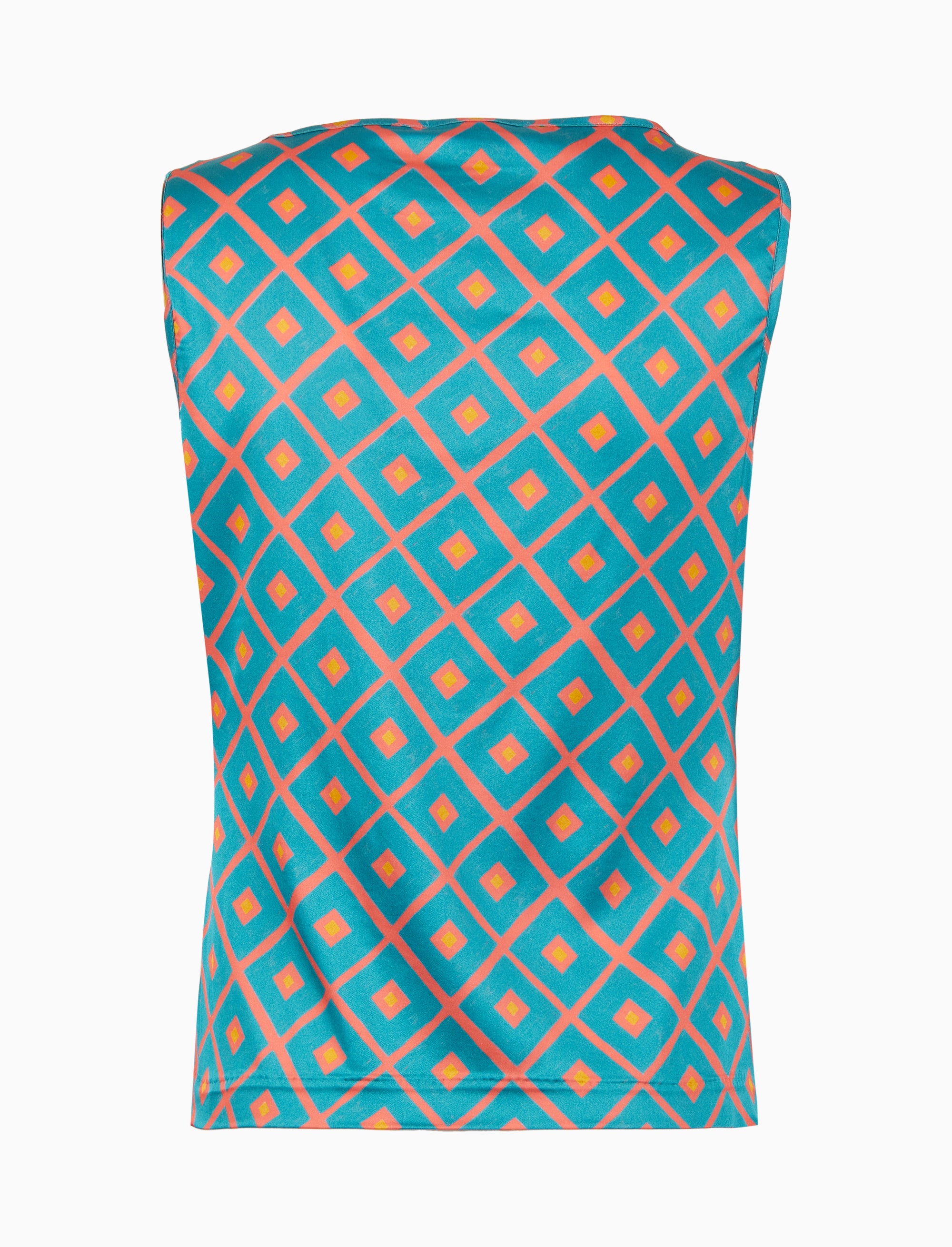 Top senza maniche donna fantasia rombi azzurro. Perfetto per un look moderno e casual.
