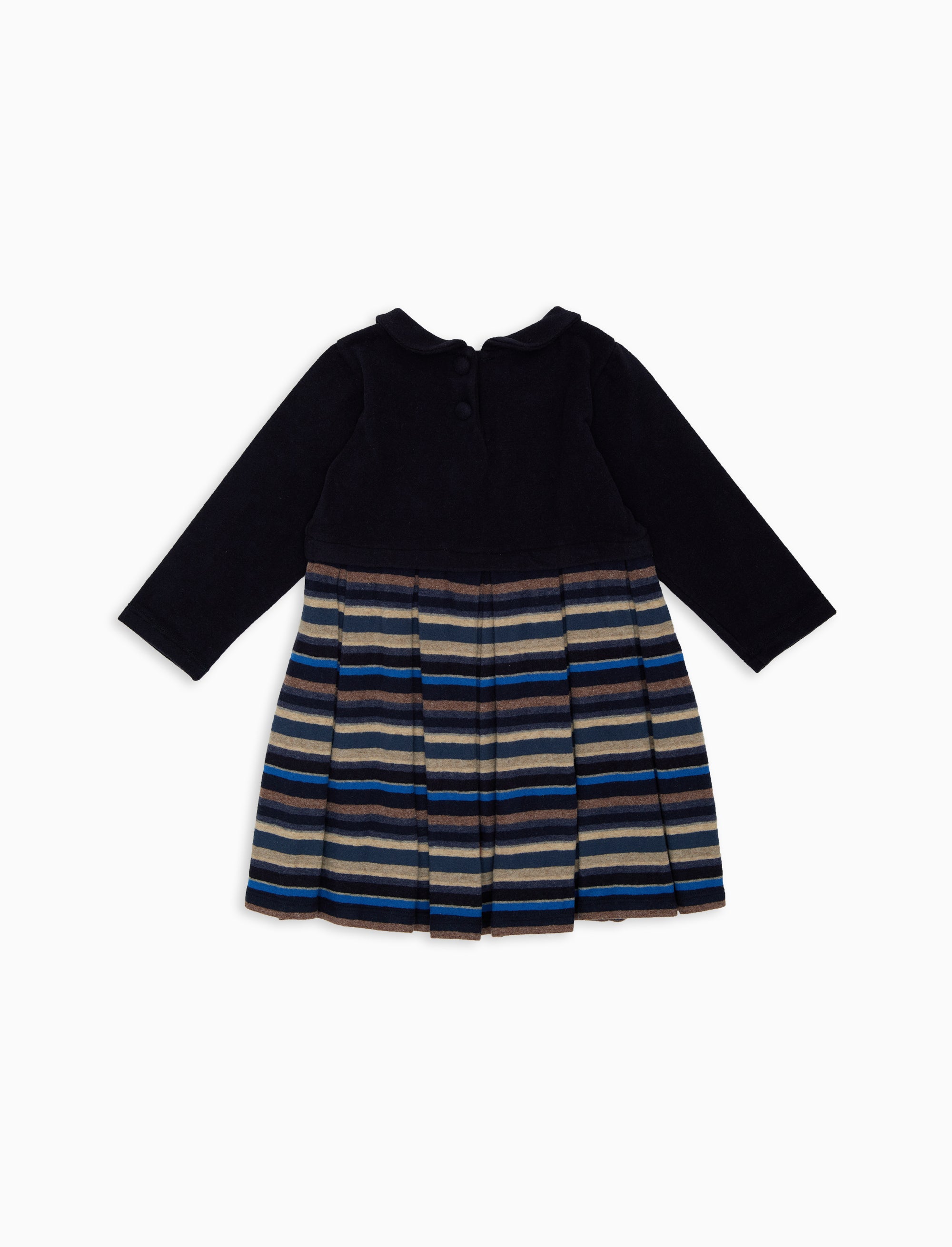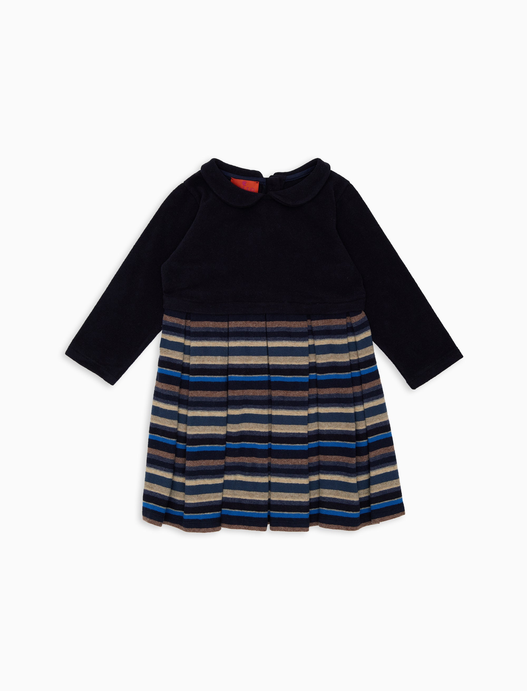 Vestito a trapezio maniche lunghe bambino pile blu tinta unita e righe multicolor