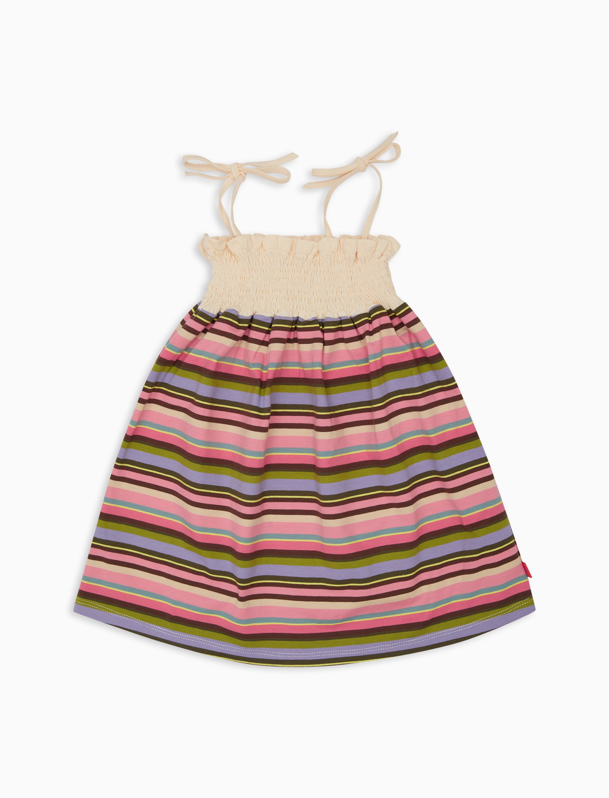 Vestito spalline annodate bambina cotone geranio righe multicolor