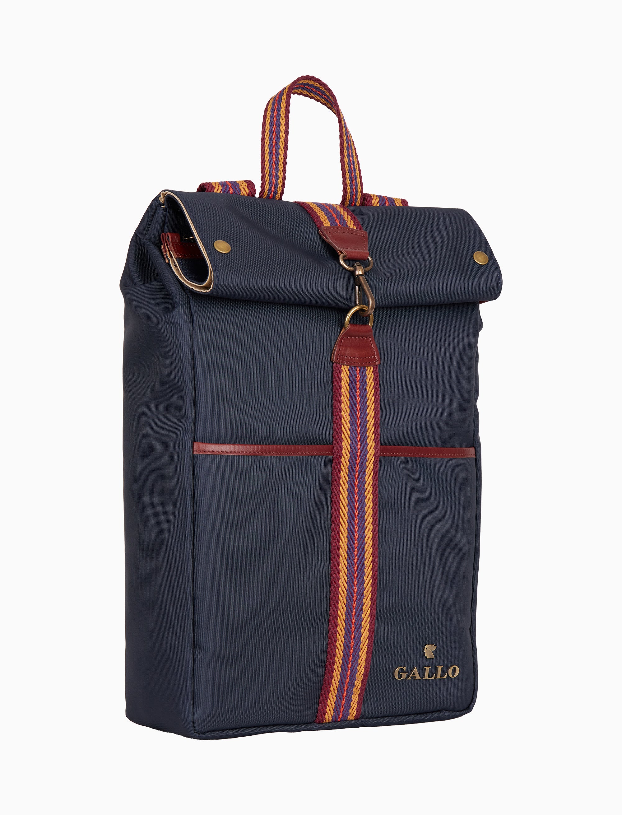 Zaino unisex in un elegante blu tinta unita, caratterizzato da un raffinato nastro spigato e dettagli in pregiata pelle. Un accessorio che riflette l'essenza della tradizione artigianale, unendo funzionalità e stile senza tempo. La sua silhouette essenziale si presta a molteplici occasioni, esprimendo un'eleganza discreta. Realizzato in Italia, sinonimo di qualità ed eccellenza GALLO.
