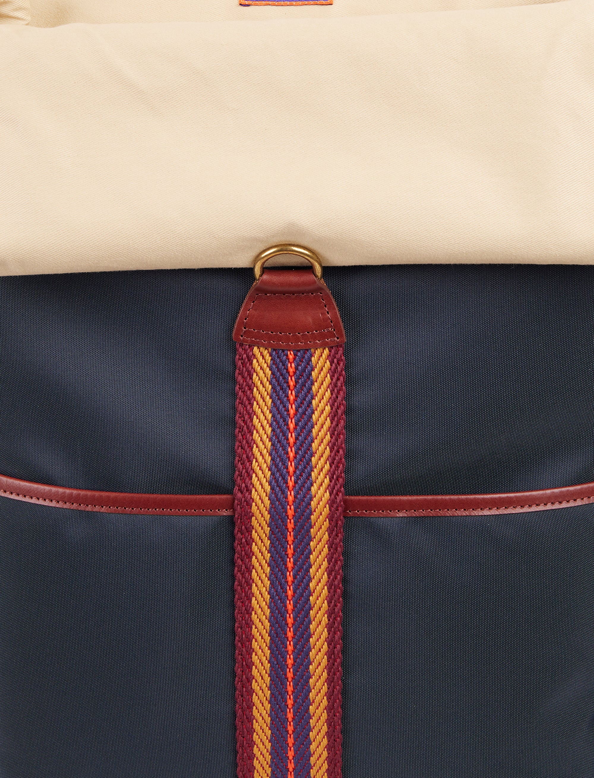 Zaino unisex tinta unita blu con nastro spigato ed inserti in pelle