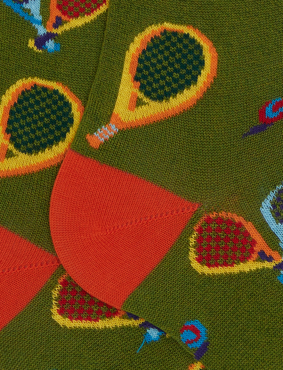 Men's long socks cotton racket pattern green